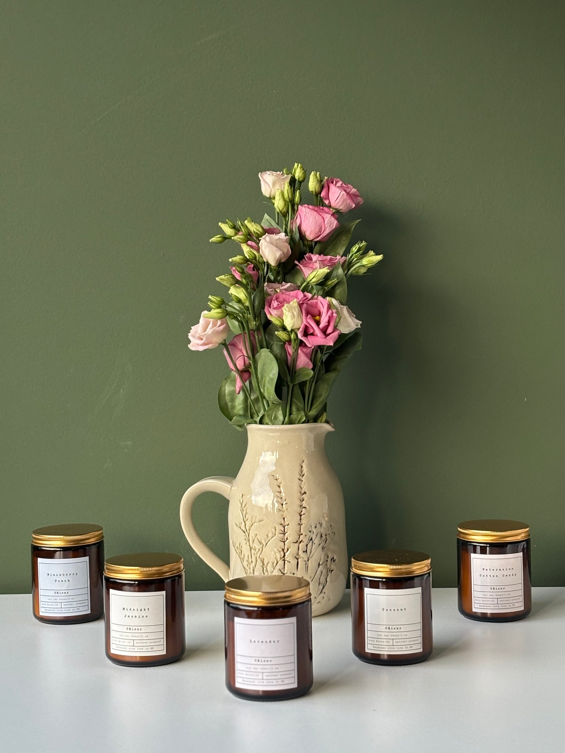 Διάλεξε ανάμεσα σε αρώματα όπως: Λεβάντα, Midnight Jasmine, Watermelon and Cotton candy, Kαρύδα, Black cherry, Aγιόκλιμα, Πεόνια, ylang and Amber, Blackberry and Peach, damask rose and Hibiscus... και άφησε τη φλόγα να σου ψιθυρίσει το δικό της "τότε". Κάθε άρωμα και μια ιστορία. Άναψε το κεράκι και άφησέ το να σου την ψιθυρίσει.