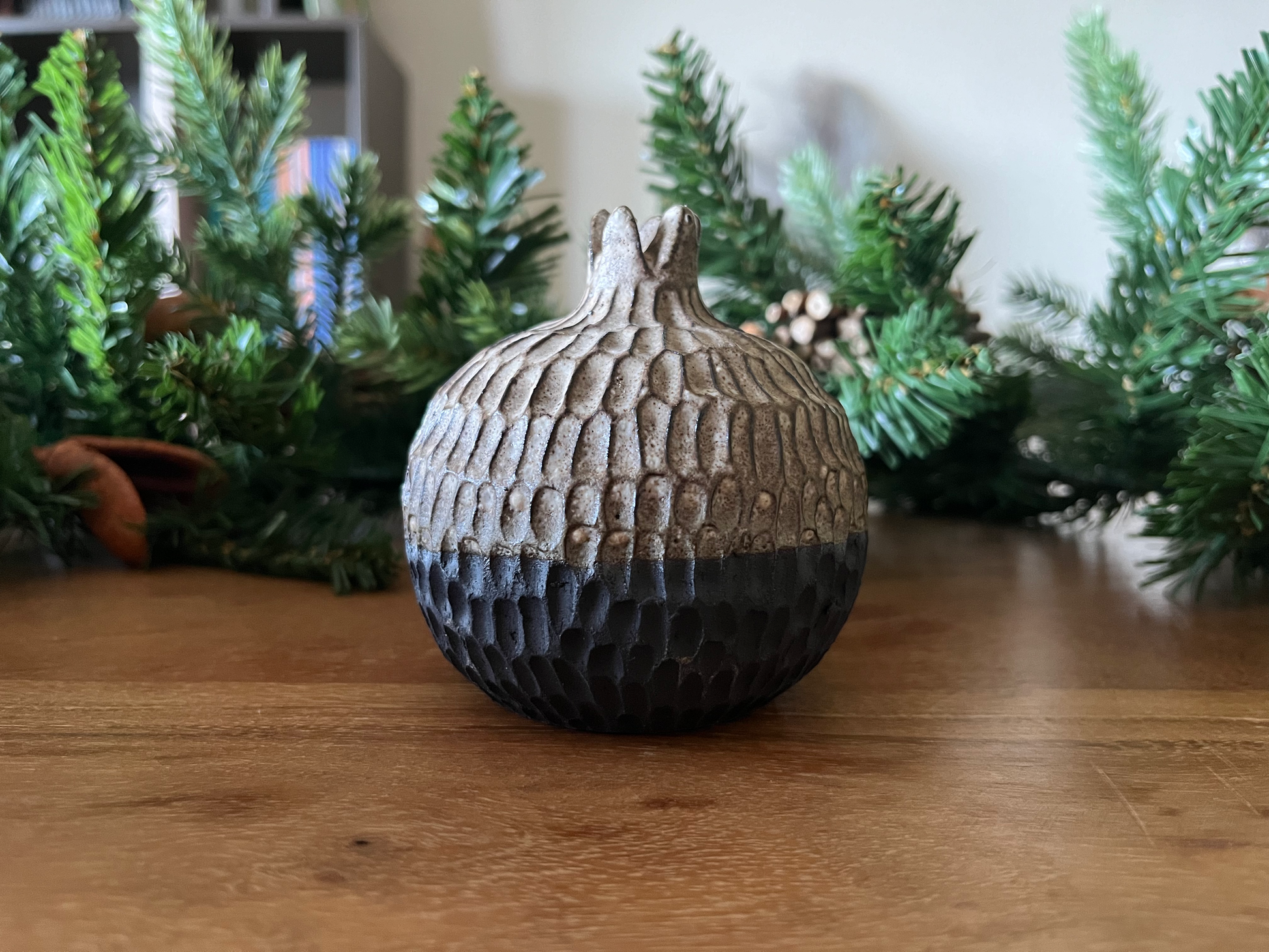 Discover the enchanting story of our ceramic pomegranate, a Christmas gift that weaves a tale of tradition and abundance. The pomegranate has been a symbol of prosperity and unity for centuries, and our handcrafted ceramic rendition pays homage to its enduring significance. Each piece is meticulously formed, painted with love, and fired to perfection, ensuring that it's not just a gift but a work of art. This pomegranate isn't just a beautiful ornament; it's a symbol of blessings, shared memories, and cherished moments. Give the gift of tradition, love, and hope this Christmas with our ceramic pomegranate.